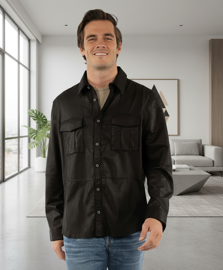 BLACK 2103 247 Unlined perforated leather shirt/jacket
